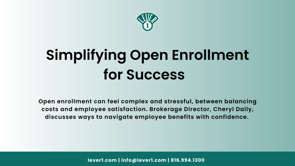 Open enrollment is an opportunity to find efficient solutions to improve both employee wellness and your organization overall. By effectively managing costs, ensuring compliance, and prioritizing employee satisfaction, businesses can complete open enrollment with success. For assistance in optimizing your open enrollment process, reach out to our experts at info@lever1.com. We’re here to help your business thrive, not just during open enrollment, but all year long.